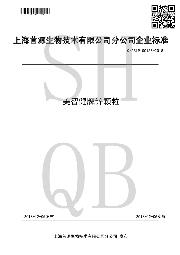 Q/ABIP 0015S-2018 美智健牌锌颗粒