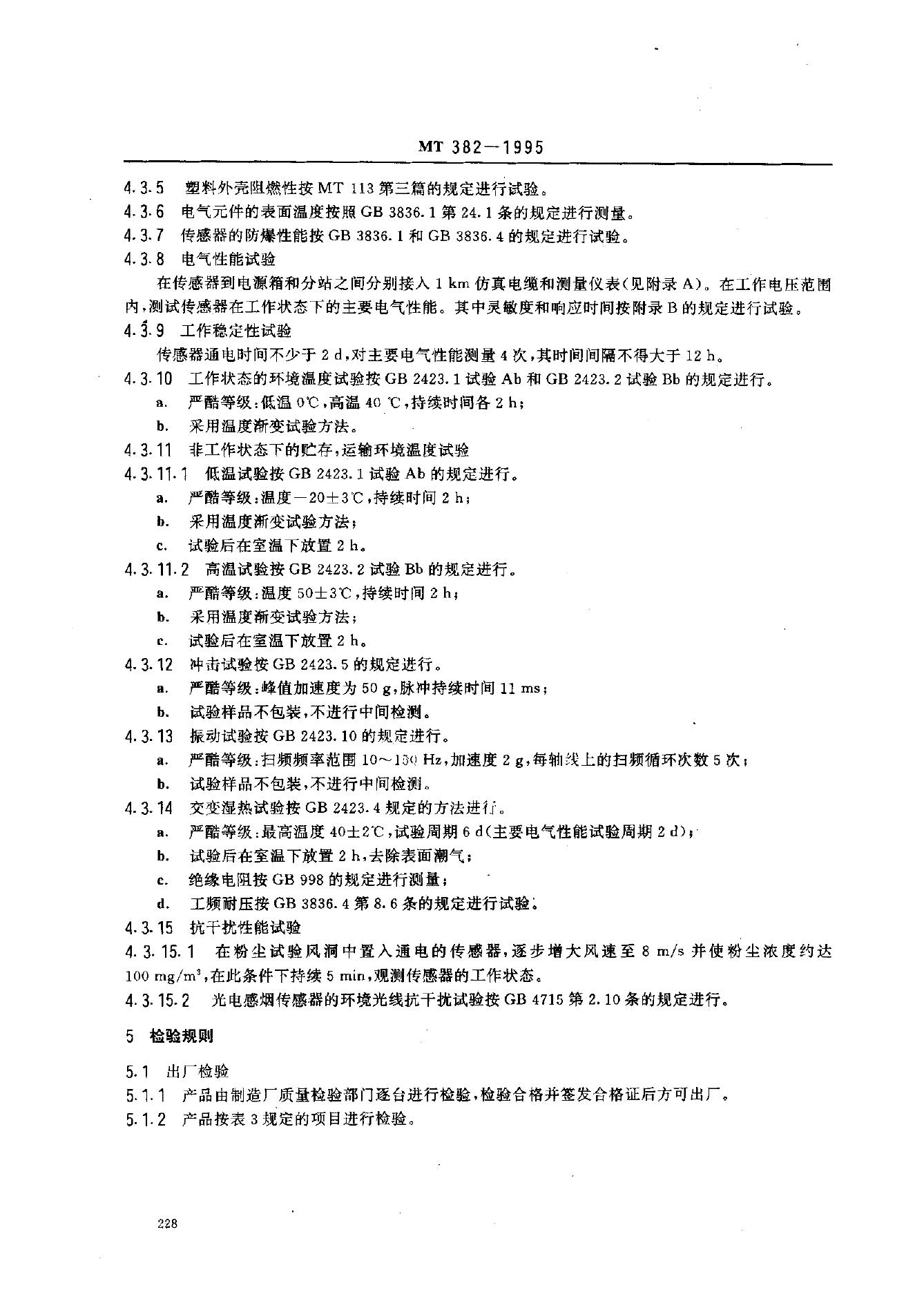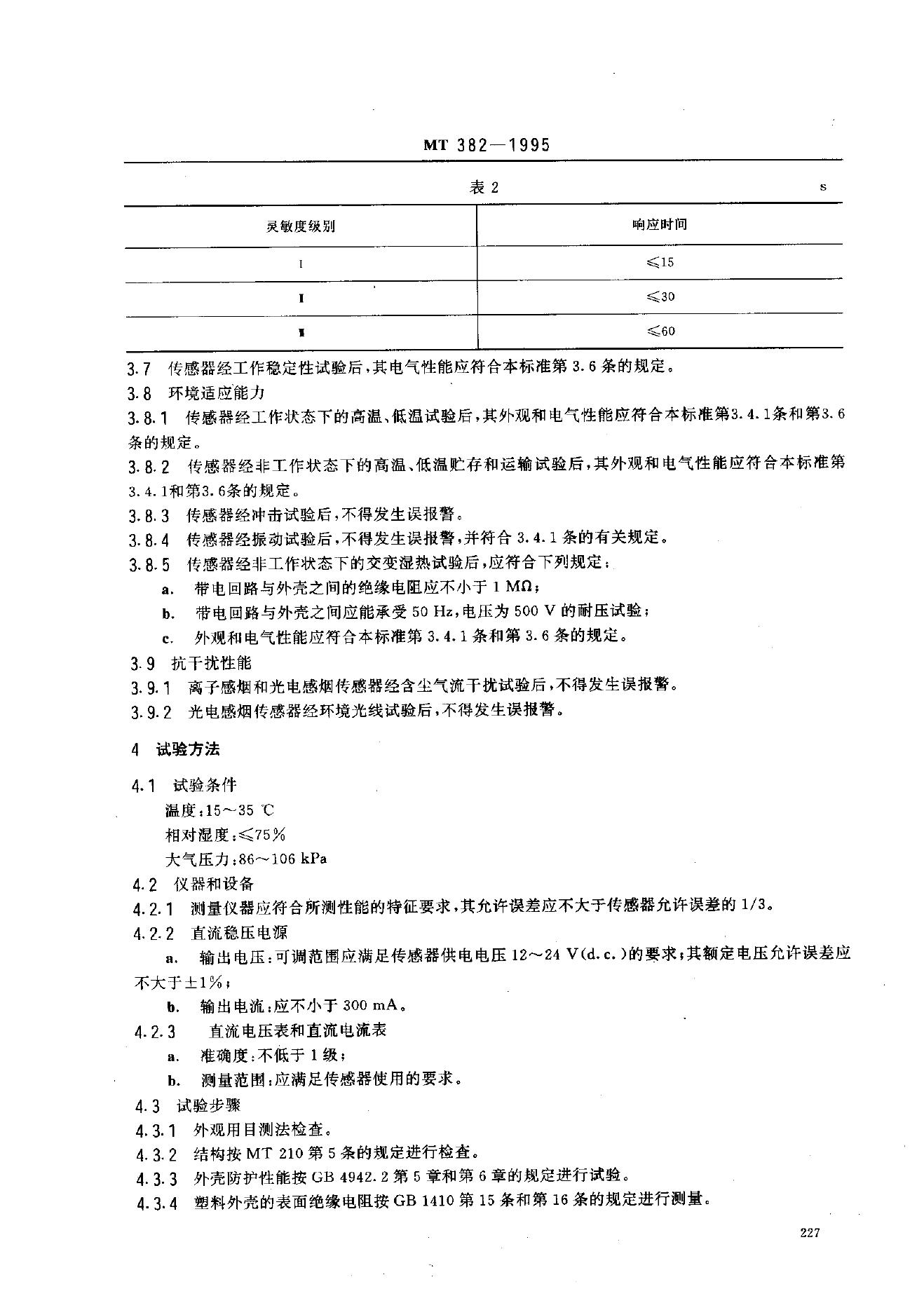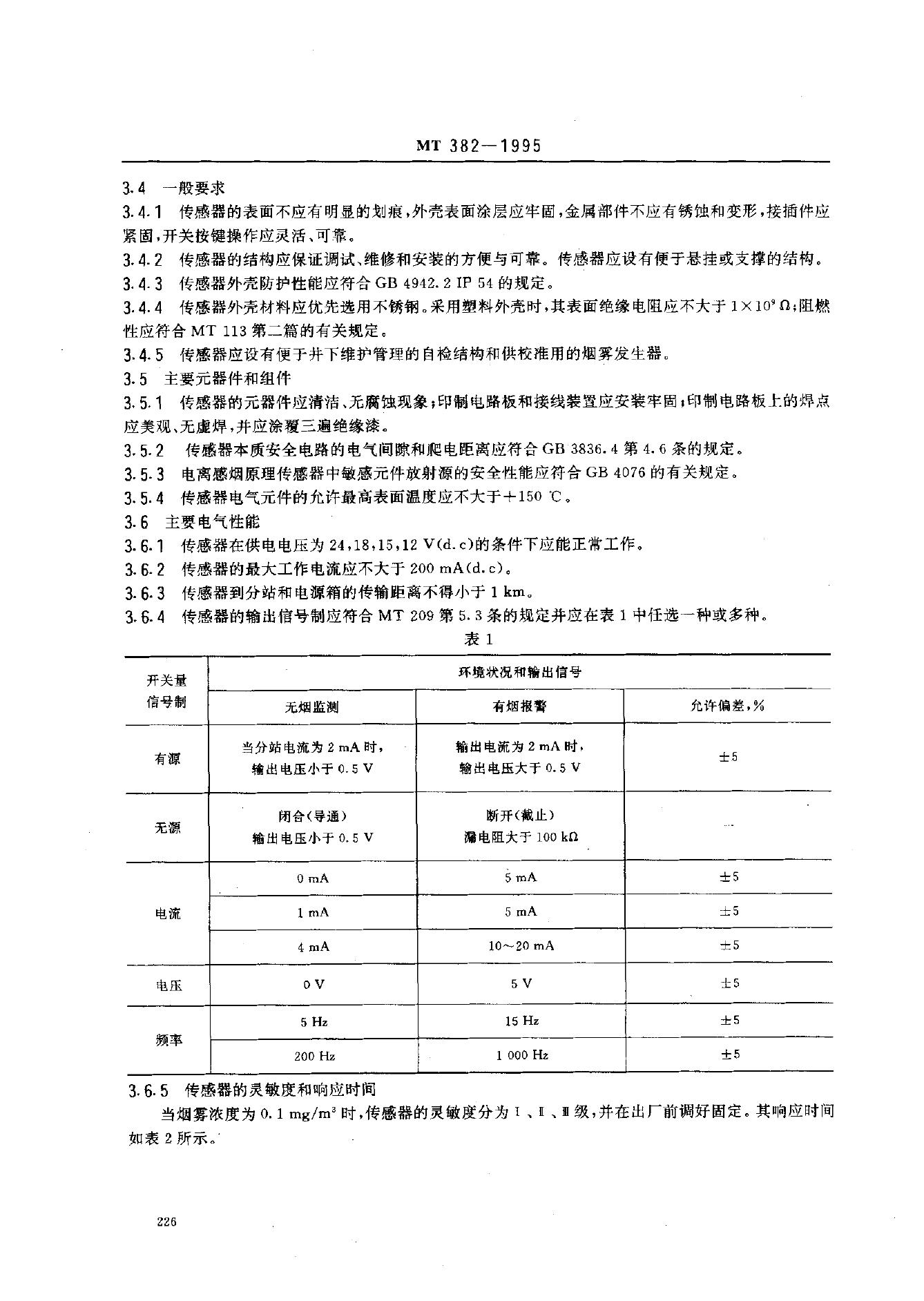 MT 382-1995 矿用烟雾传感器通用技术条件