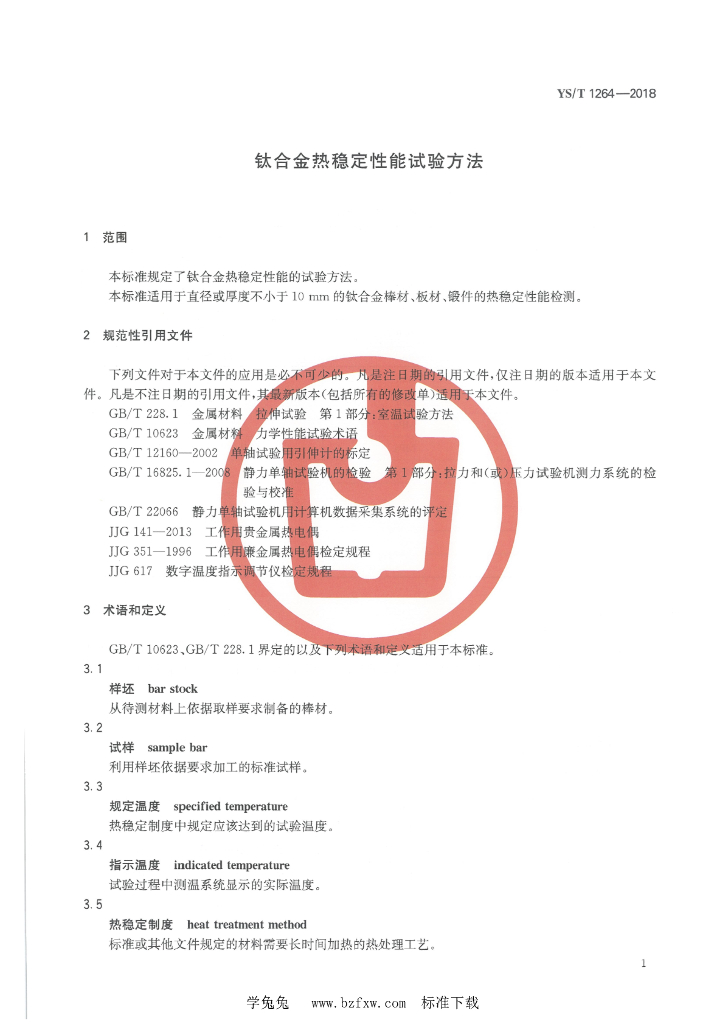 YS/T 1264-2018 钛合金热稳定性能试验方法