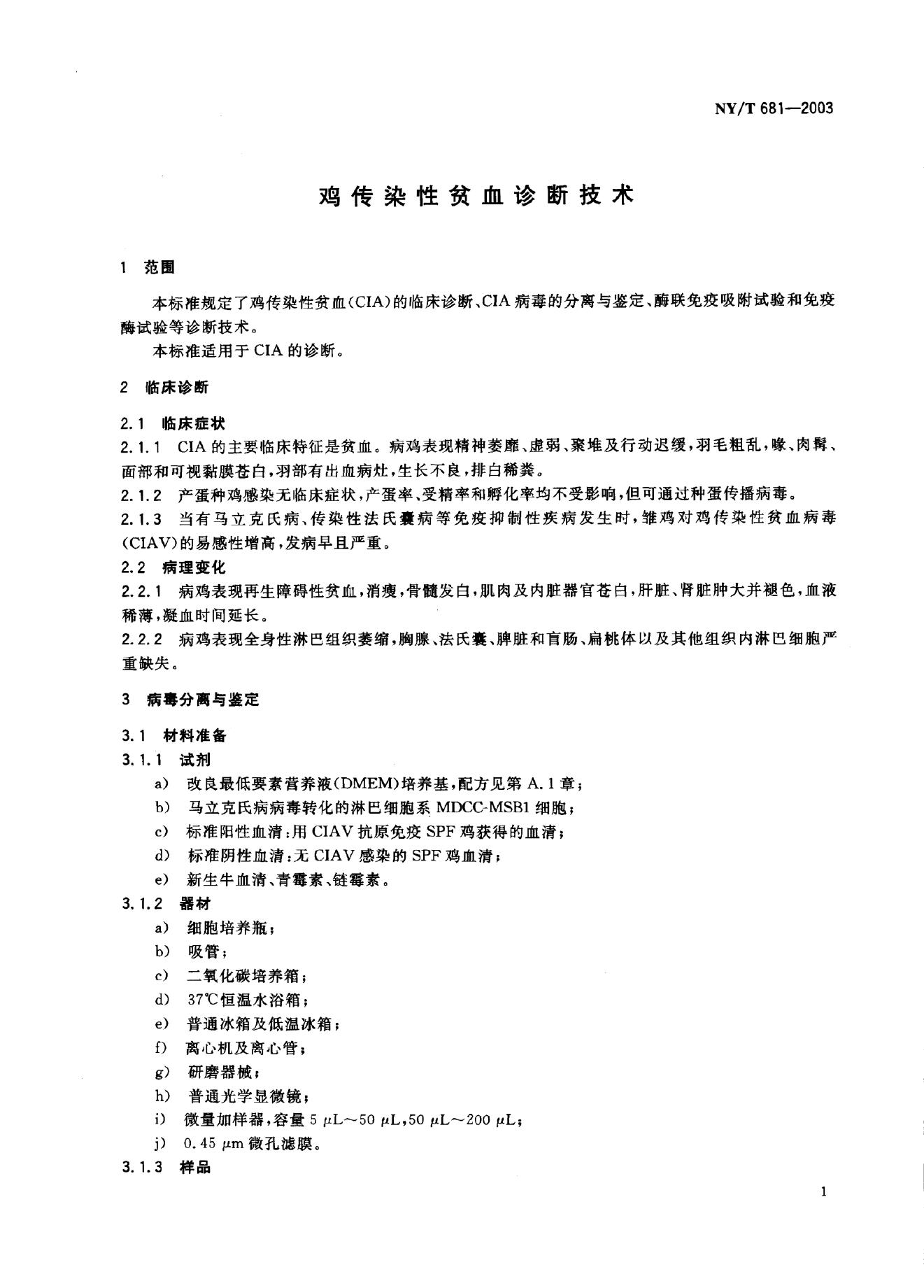 NY/T 681-2003 鸡传染性贫血诊断技术