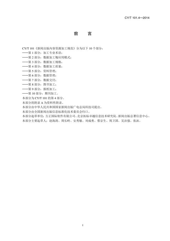CY/T 101.4-2014 新闻出版内容资源加工规范 第4部分:数据加工质量