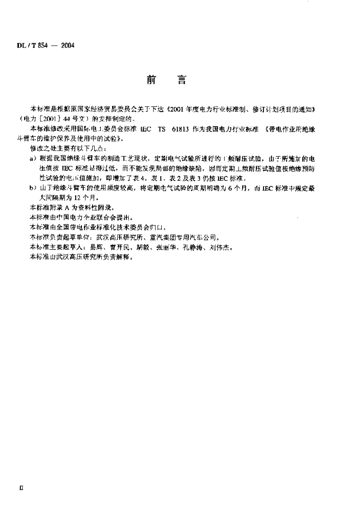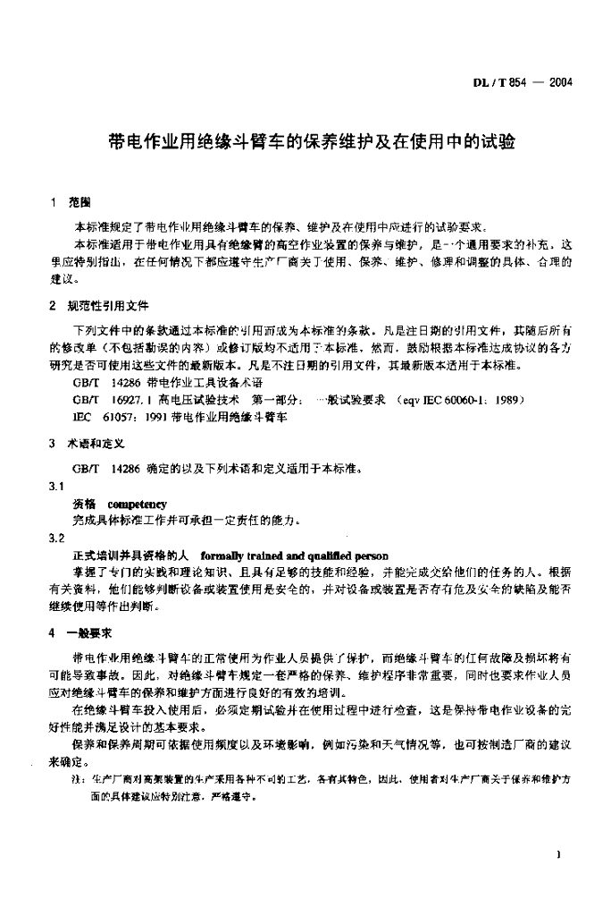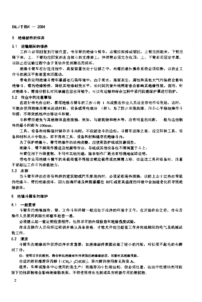 DL/T 854-2004 带电作业用绝缘斗臂车的保养维护及在使用中的试验