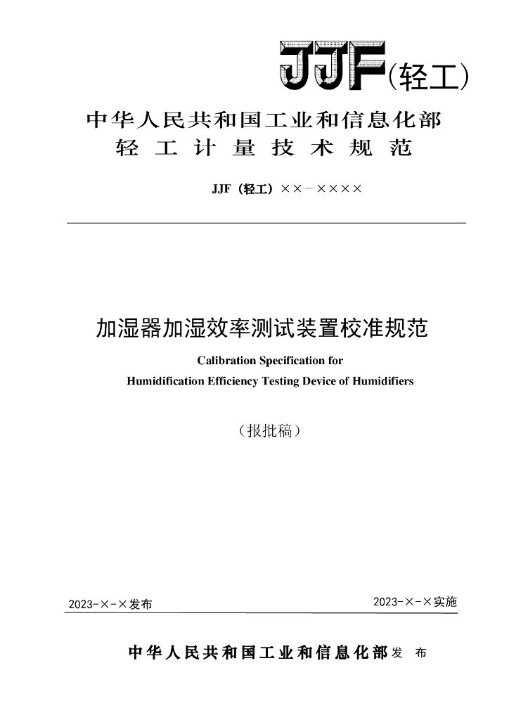 JJF(轻工)177-2023 加湿器加湿效率测试装置校准规范(报批稿)
