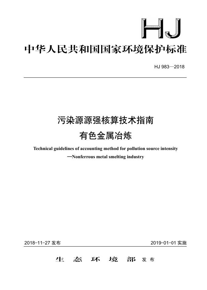 HJ 983-2018 污染源源强核算技术指南 有色金属冶炼
