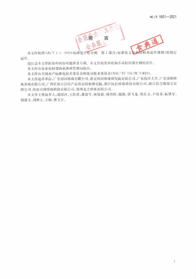 广东绍河珍珠有限公司、淮安绍河珍珠研究院有限公司、广东海洋大学、广东荣辉珍珠养殖有限公司、广西壮族自治区产品质量检验研究院、浙江阮仕珍珠股份有限公司、浙江情之缘珠宝有限公司、海南京润珍珠科技有限公司、深圳龙之珍珠有限公司