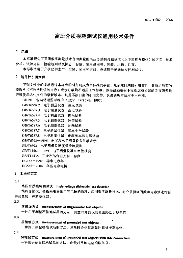 DL/T 962-2005 高压介质损耗测试仪通用技术条件