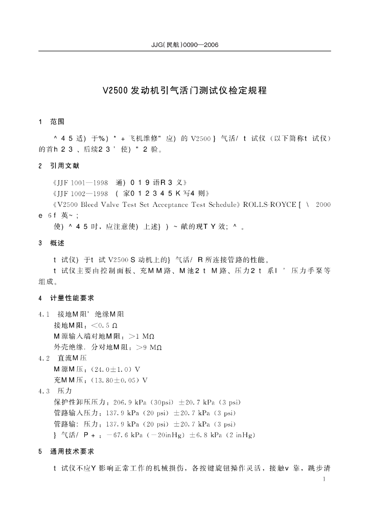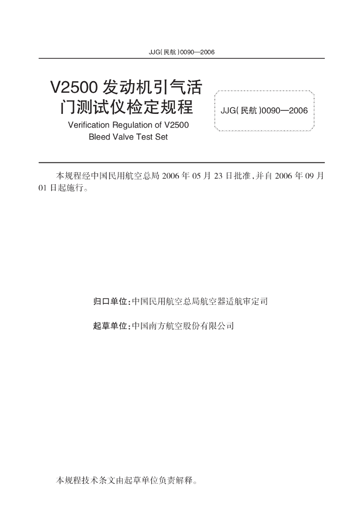 JJG(民航)0090-2006 V2500发动机引气活门测试仪