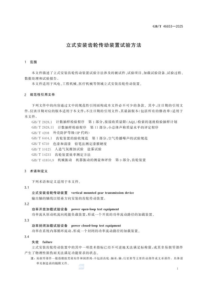 GB/T 46653-2025 立式安装齿轮传动装置试验方法