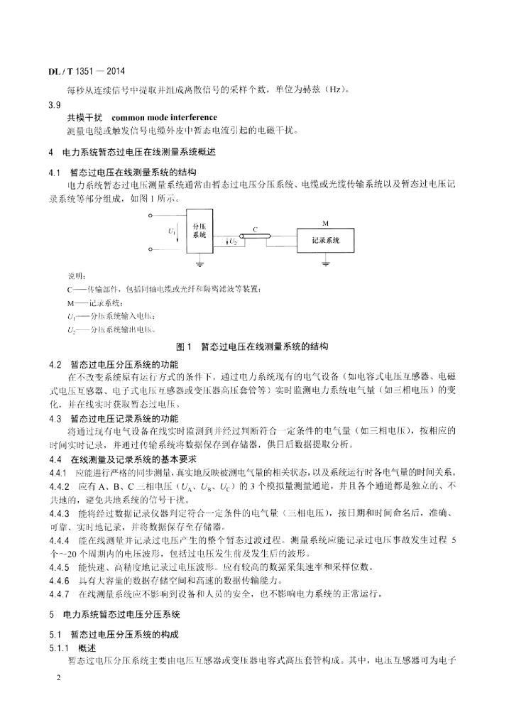 DL/T 1351-2014 电力系统暂态过电压在线测量及记录系统技术导则
