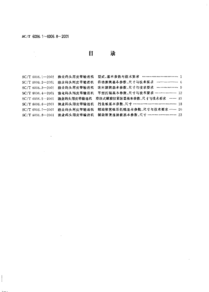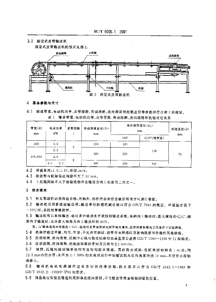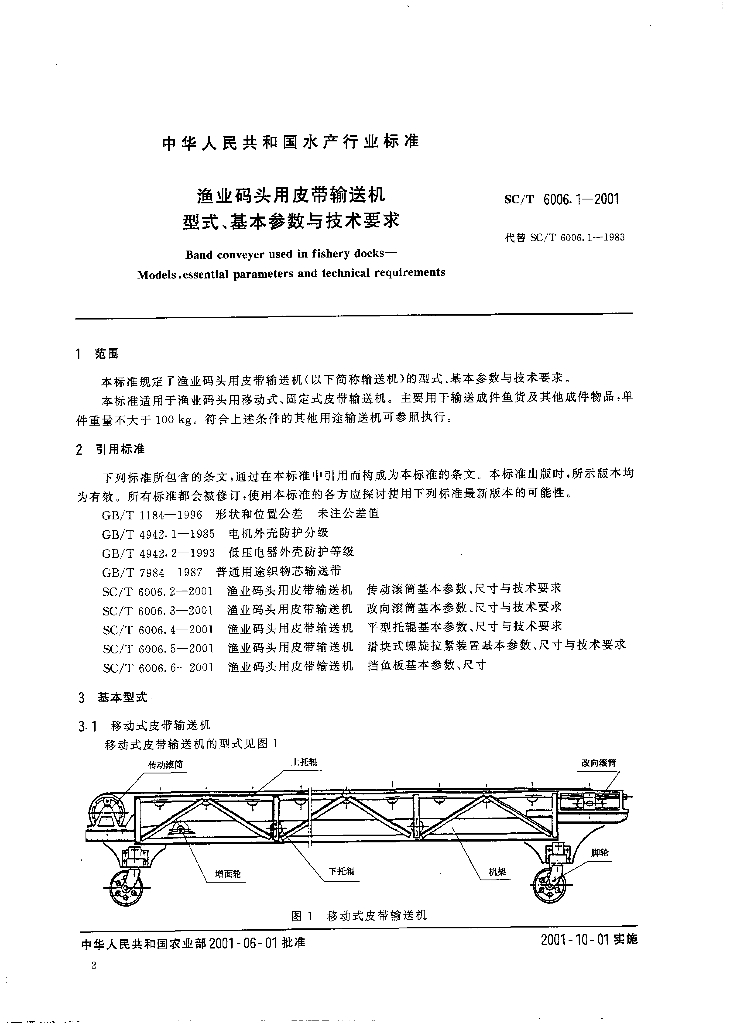 SC/T 6006.1-2001 渔业码头用皮带输送机 型式、基本参数与技术要求