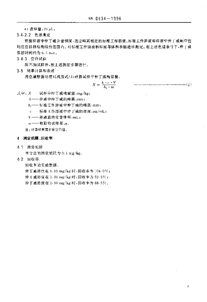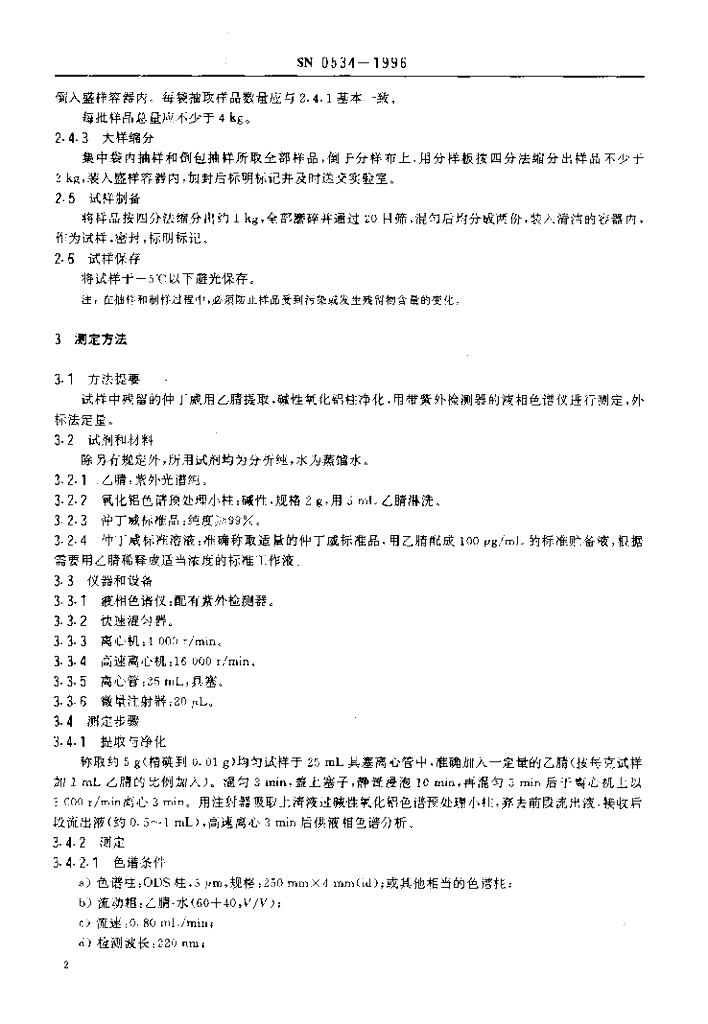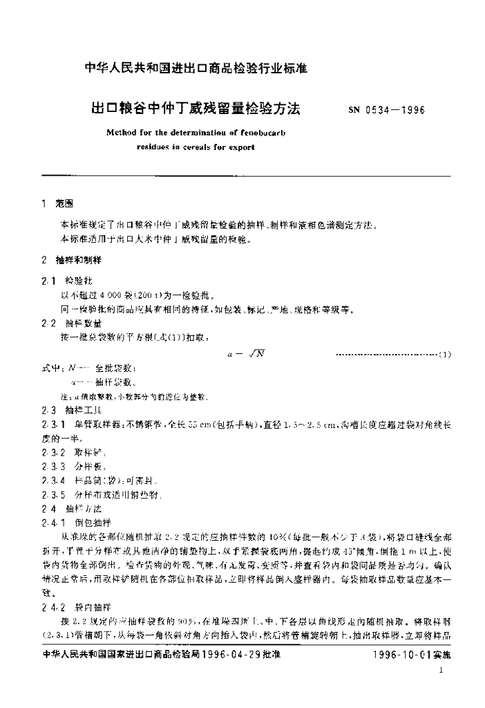 SN 0534-1996 出口粮谷中仲丁威残留量检验方法