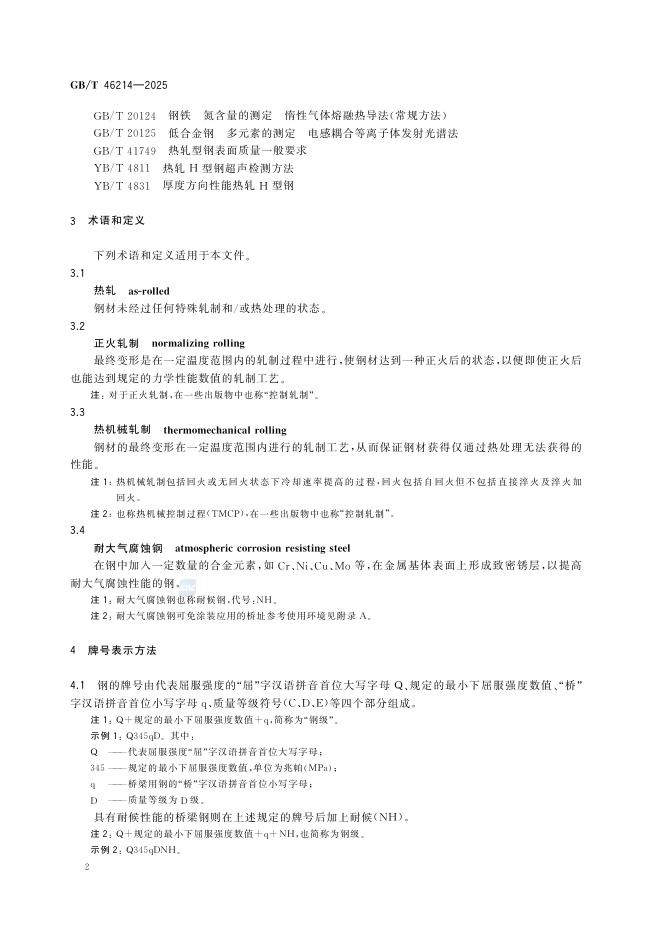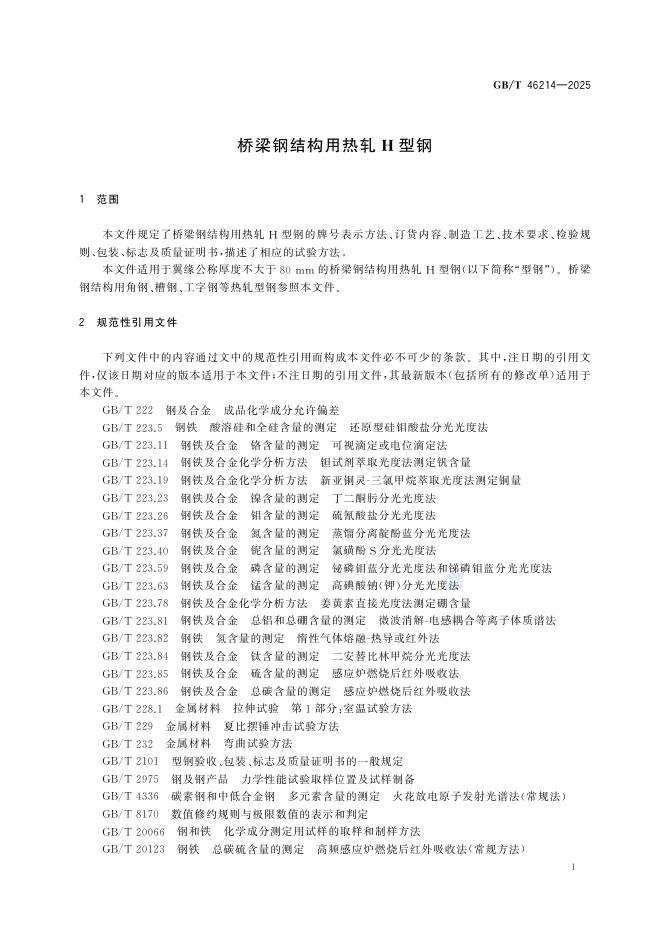 GB/T 46214-2025 桥梁钢结构用热轧H型钢