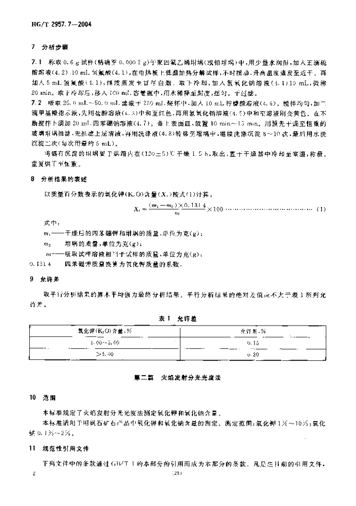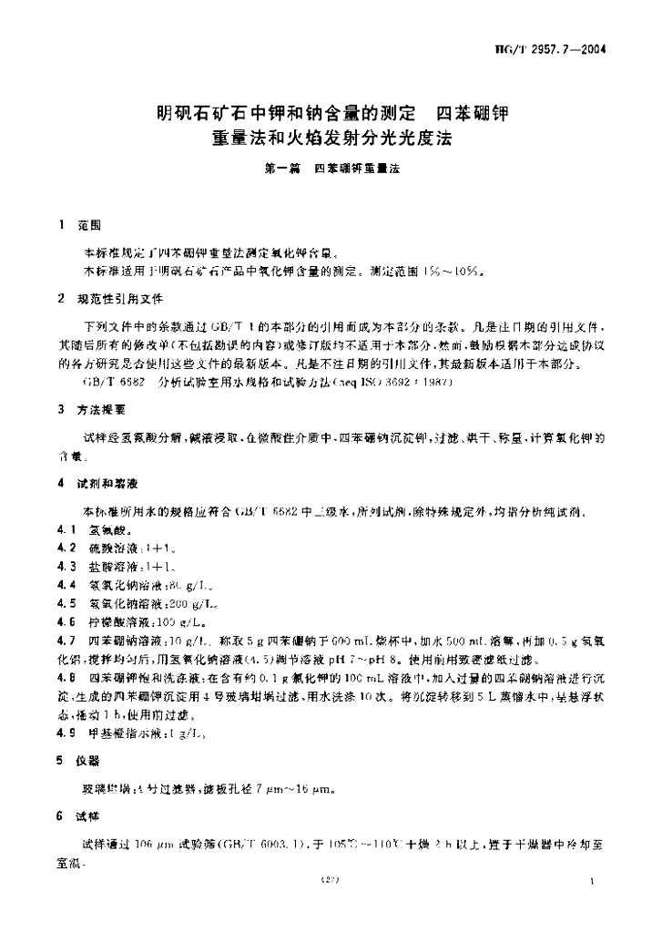 HG/T 2957.7-2004 明矾石矿石中钾和钠含量的测定 四苯硼钾重量法和火焰发射分光光度法