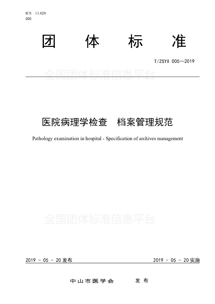 T/ZSYX 005-2019 医院病理学检查 档案管理规范