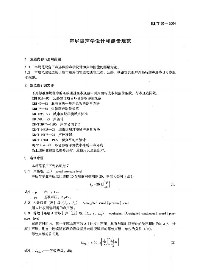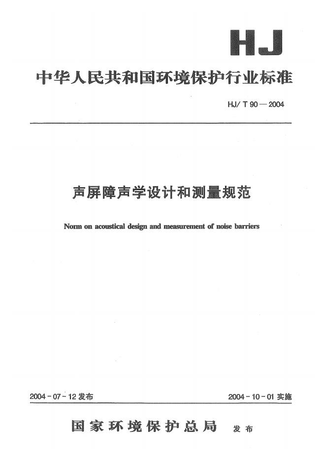 HJ/T 90-2004 声屏障声学设计和测量规范