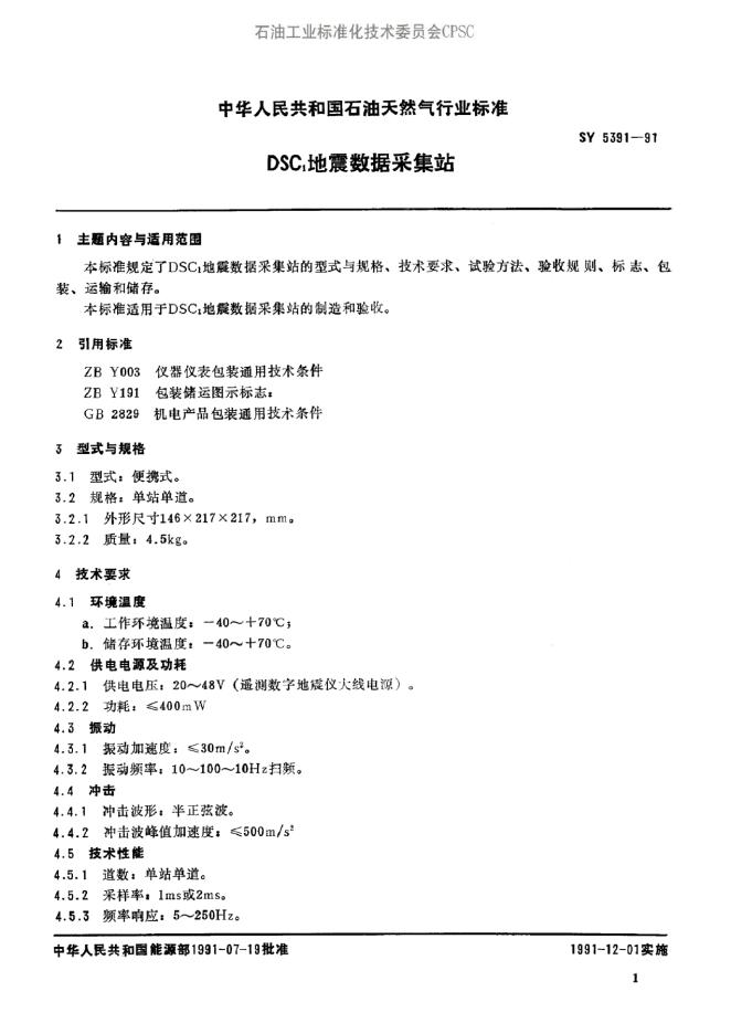 SY/T 5563-1993 DSZ1地震数据增音站