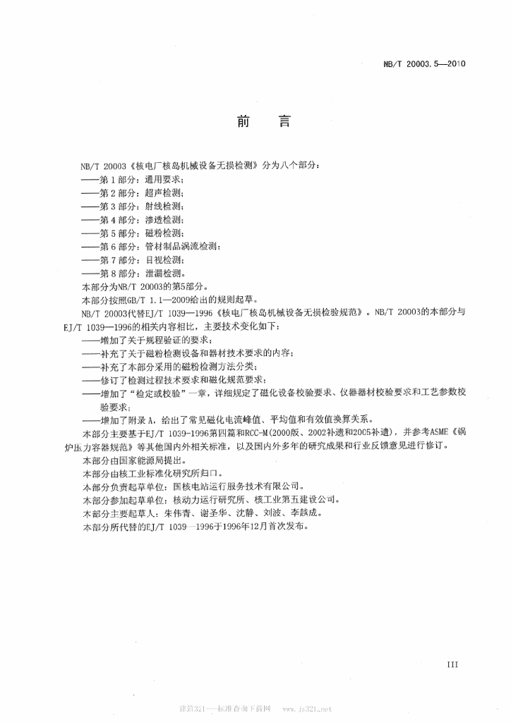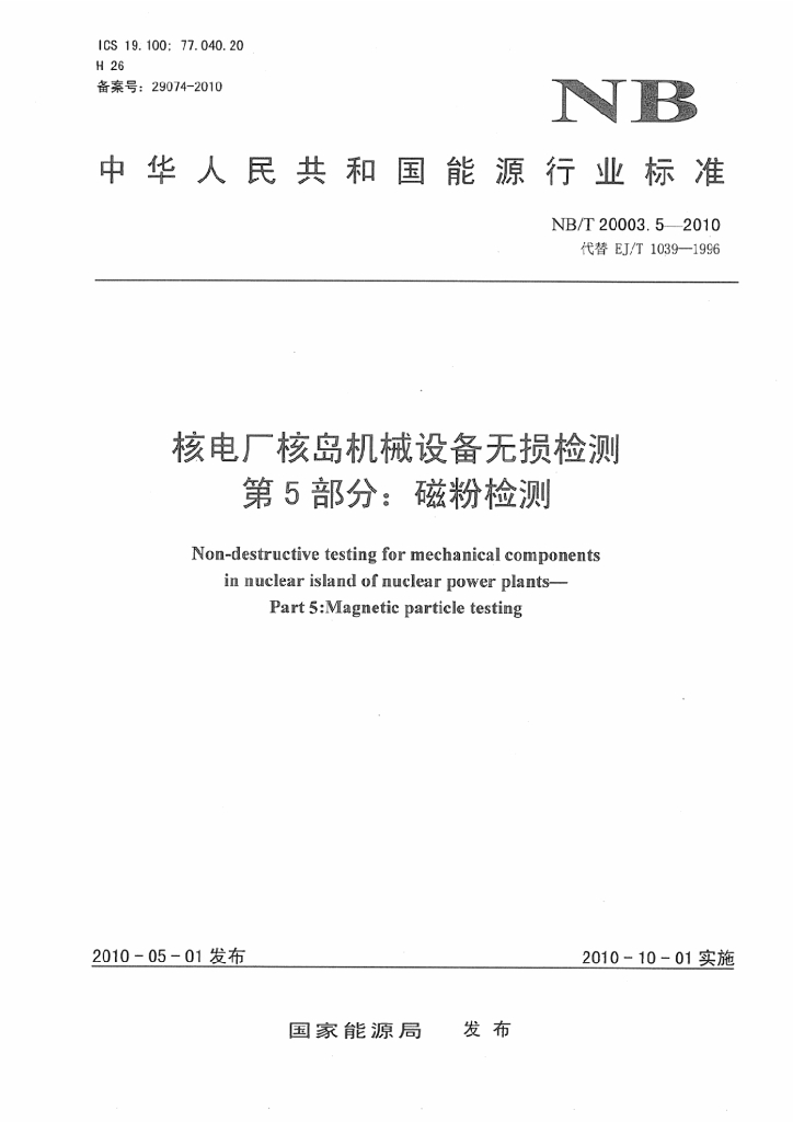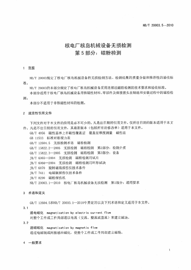 NB/T 20003.5-2010 核电厂核岛机械设备无损检测 第5部分:磁粉检测