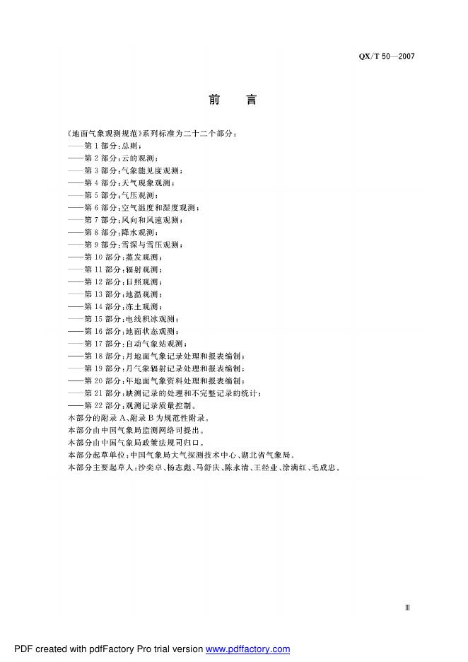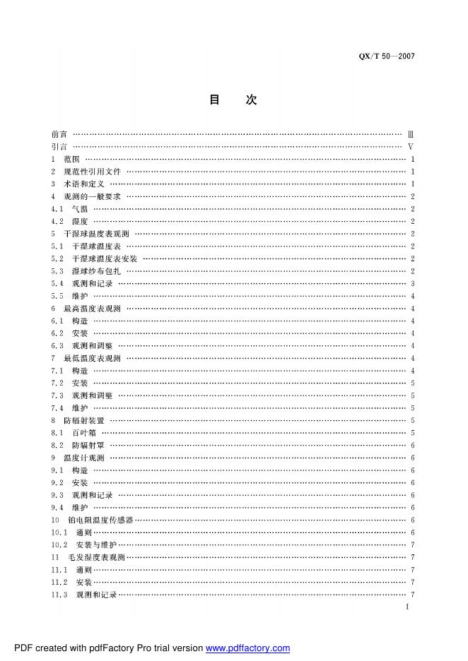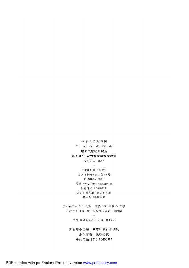 QX/T 50-2007 地面气象观测规范 第6部分:空气温度和湿度观测