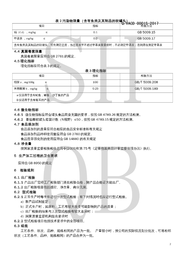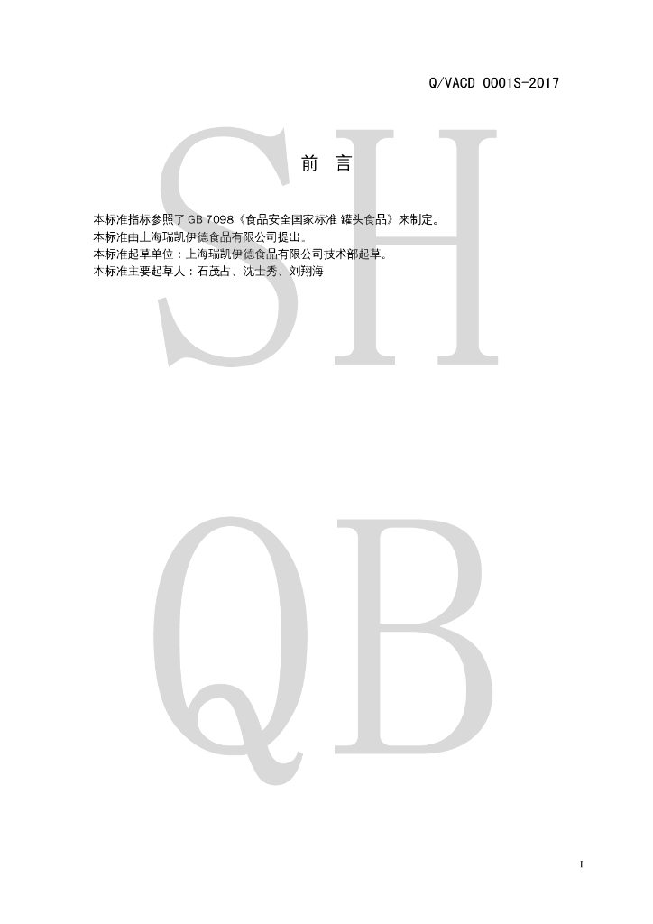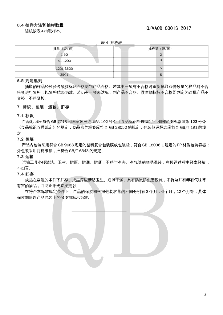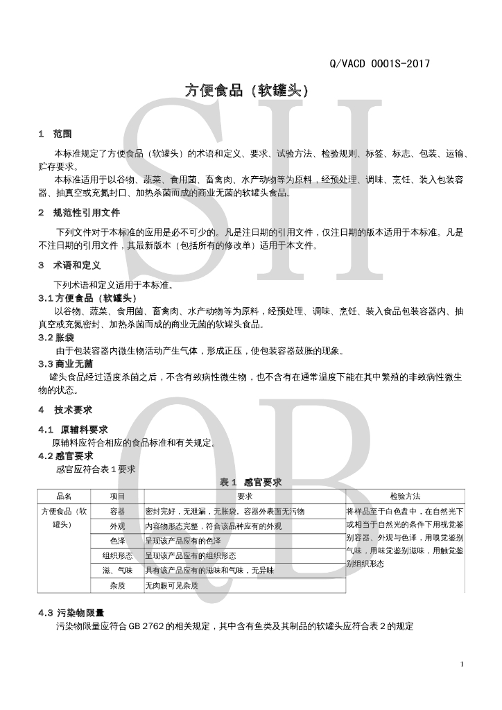 Q/VACD 0001S-2017 方便食品(软罐头)