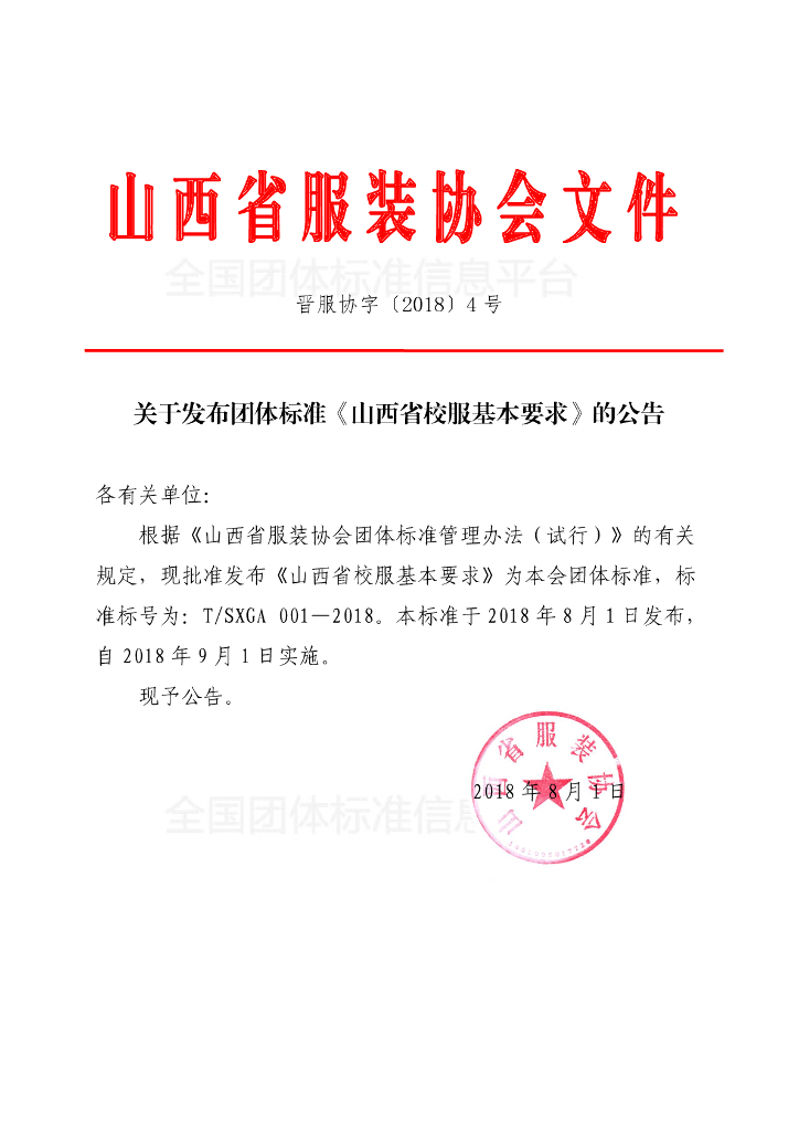 - 团体名称:山西省服装协会