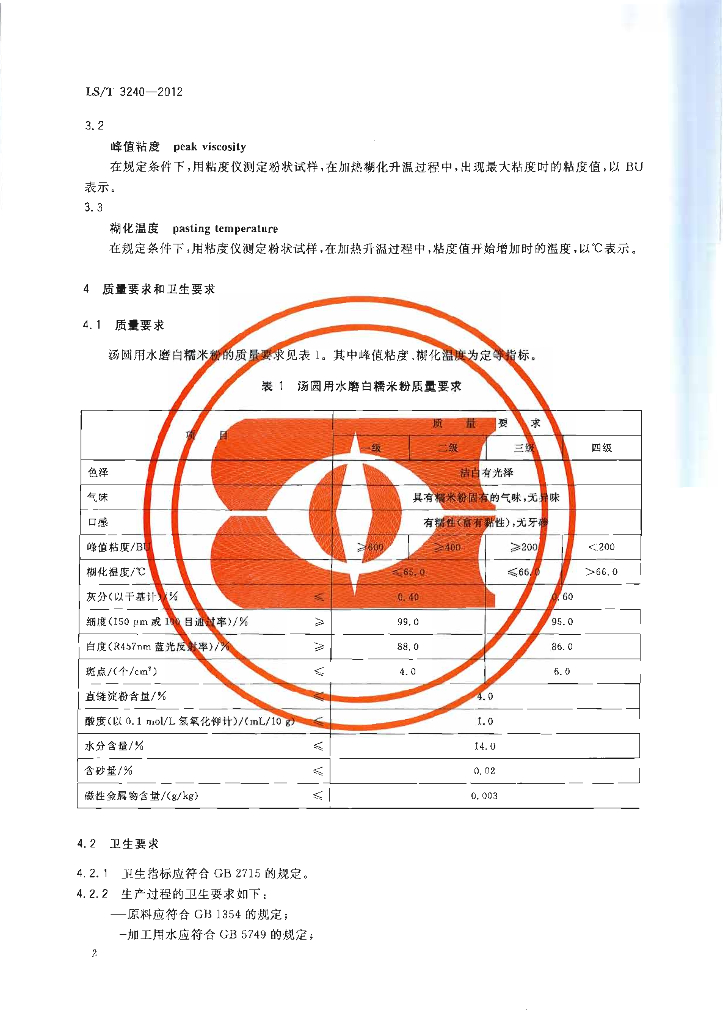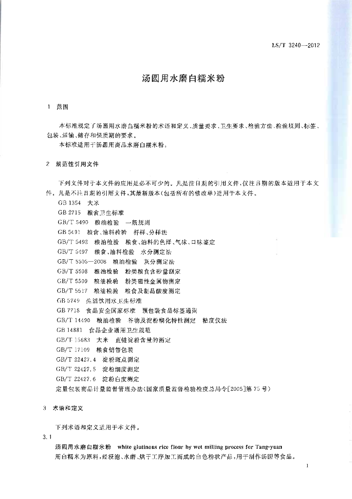LS/T 3240-2012 汤圆用水磨白糯米粉