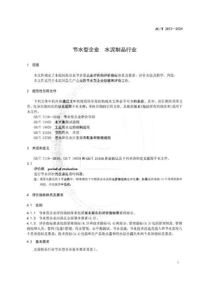 JC/T 2813-2024 节水型企业 水泥制品行业