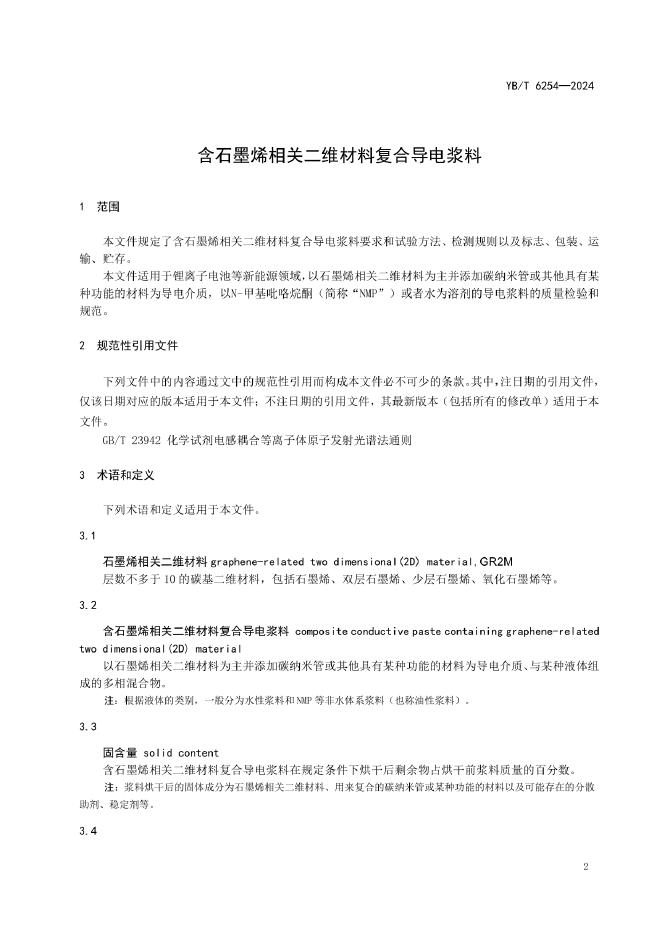 YB/T 6254-2024 含石墨烯相关二维材料复合导电浆料