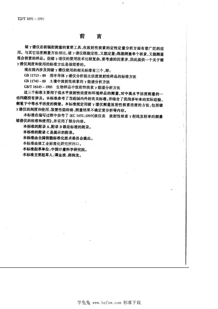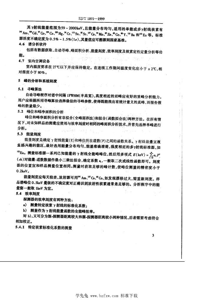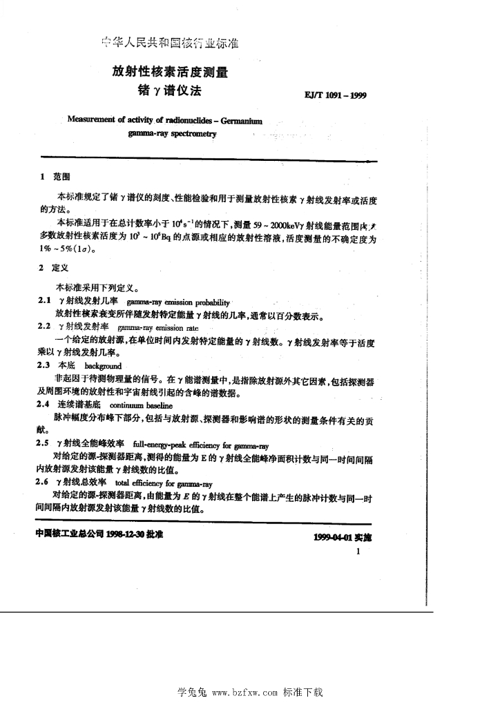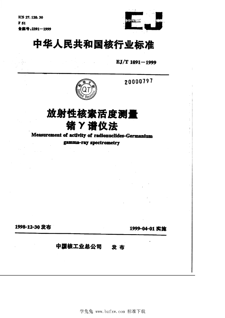 EJ/T 1091-1999 放射性核素活度测量 锗γ谱仪法