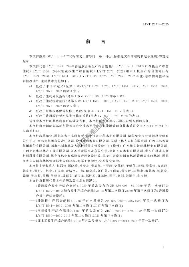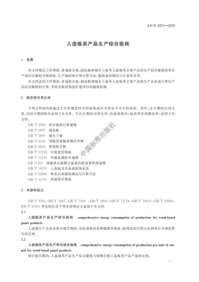 LY/T 2071-2024 人造板类产品生产综合能耗