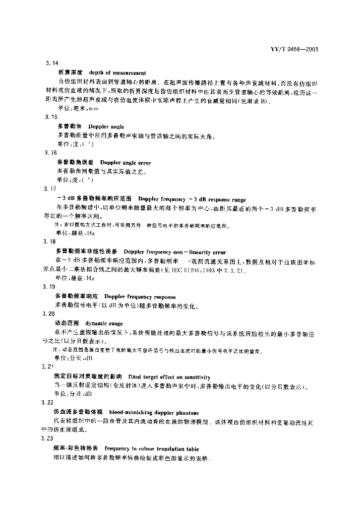 YY/T 0458-2003 超声多普勒仿血流体模的技术要求