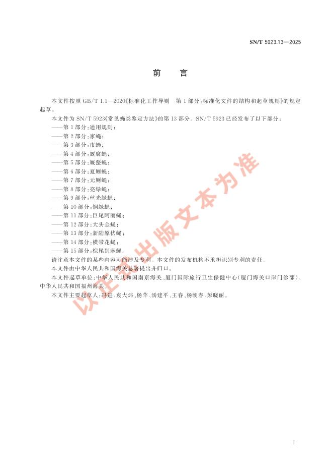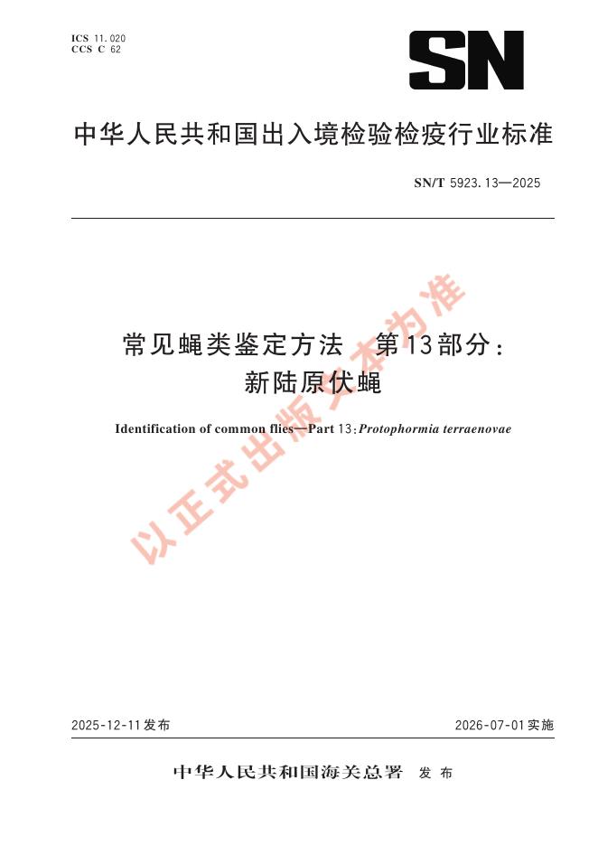 SN/T 5923.13-2025 常见蝇类鉴定方法 第13部分:新陆原伏蝇