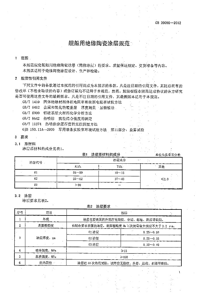CB 20090-2012 舰船用绝缘陶瓷涂层规范