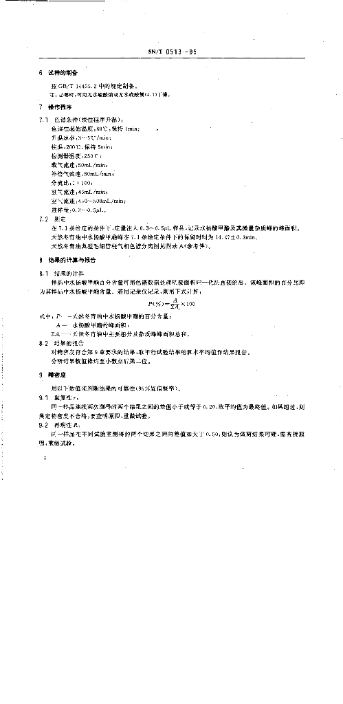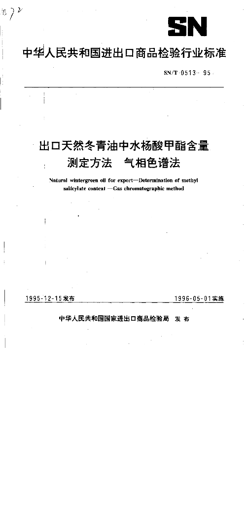SN/T 0513-1995 出口天然冬青油中水杨酸甲酯含量测定方法气相色谱法