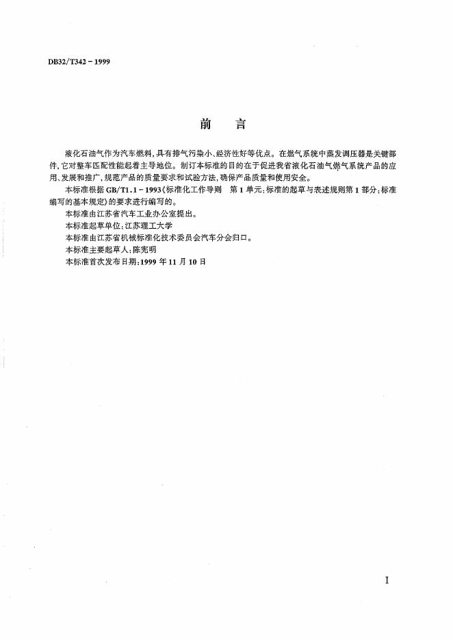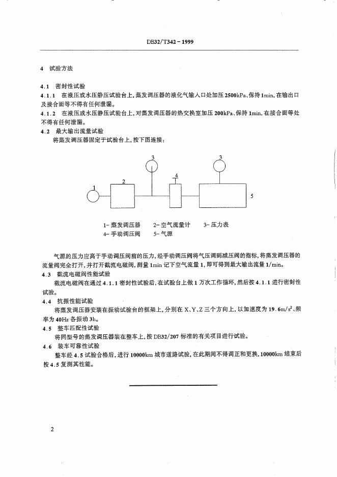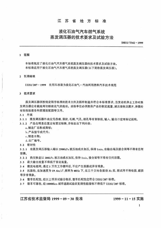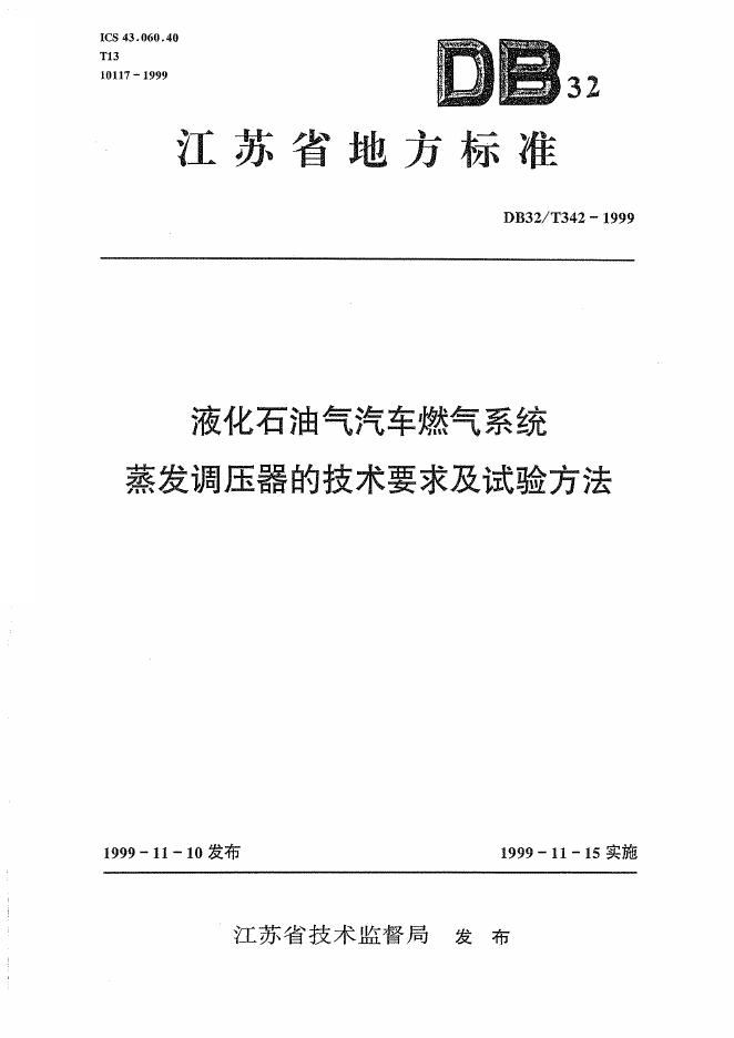 DB32/ 342-1999 液化石油气汽车燃气系统蒸发调压器的技术要求及试验方法