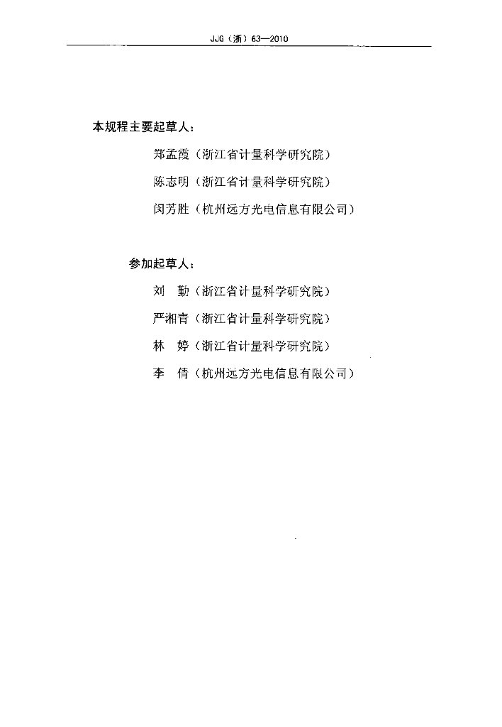 郑孟霞(浙江省计量科学研究院)、陈志明(浙江省计量科学研究院)、闵芳胜(杭州远方光电信息有限公司)、刘勤(浙江省计量科学研究院)、严湘青(浙江省计量科学研究院)、林婷(浙江省计量科学研究院)、李倩(杭州远方光电信息有限公司)