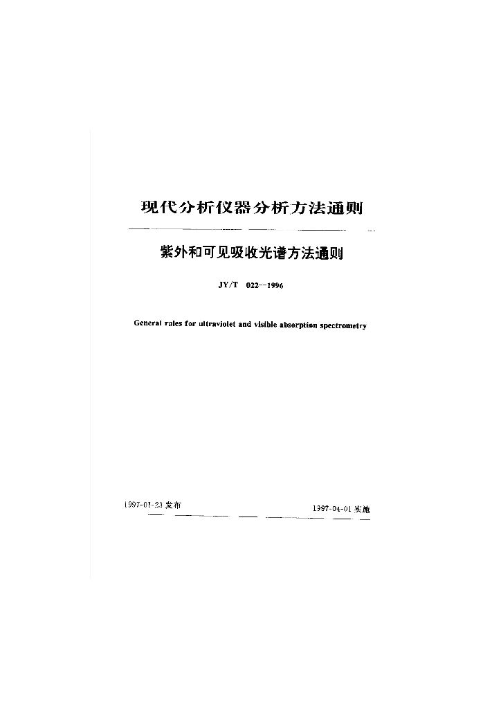 JY/T 022-1996 紫外和可见吸收光谱方法通则