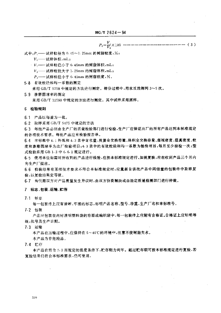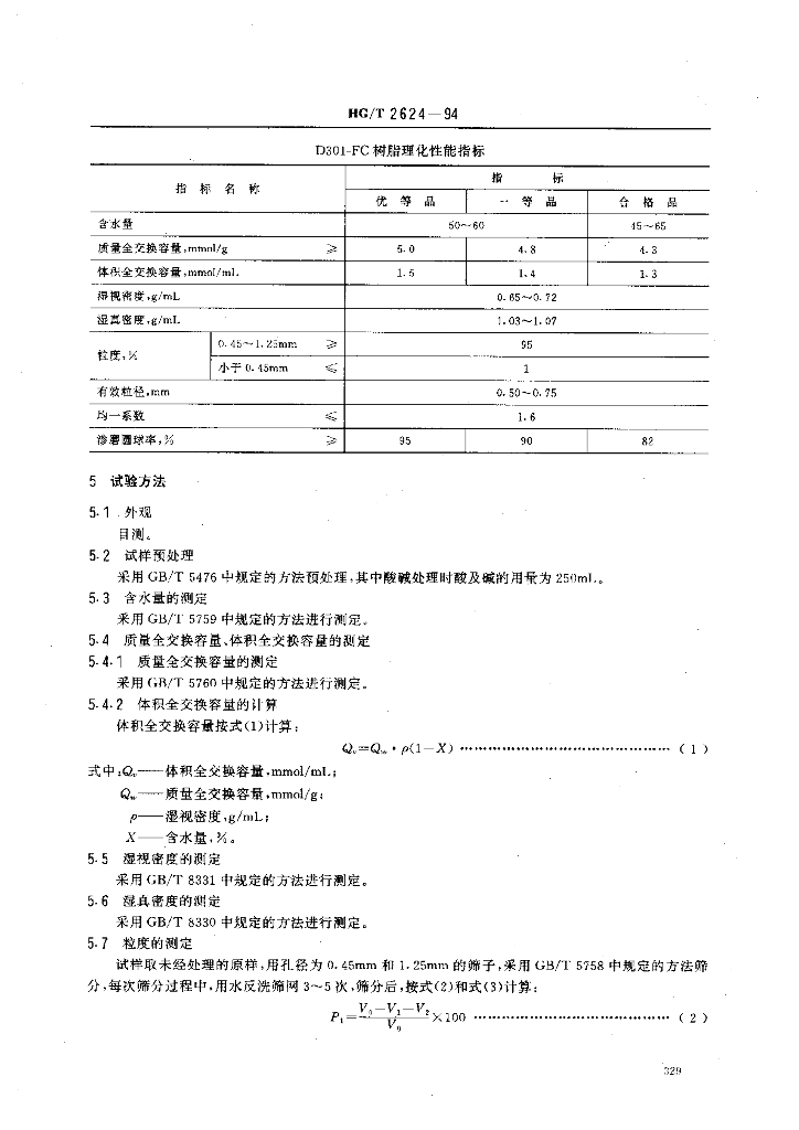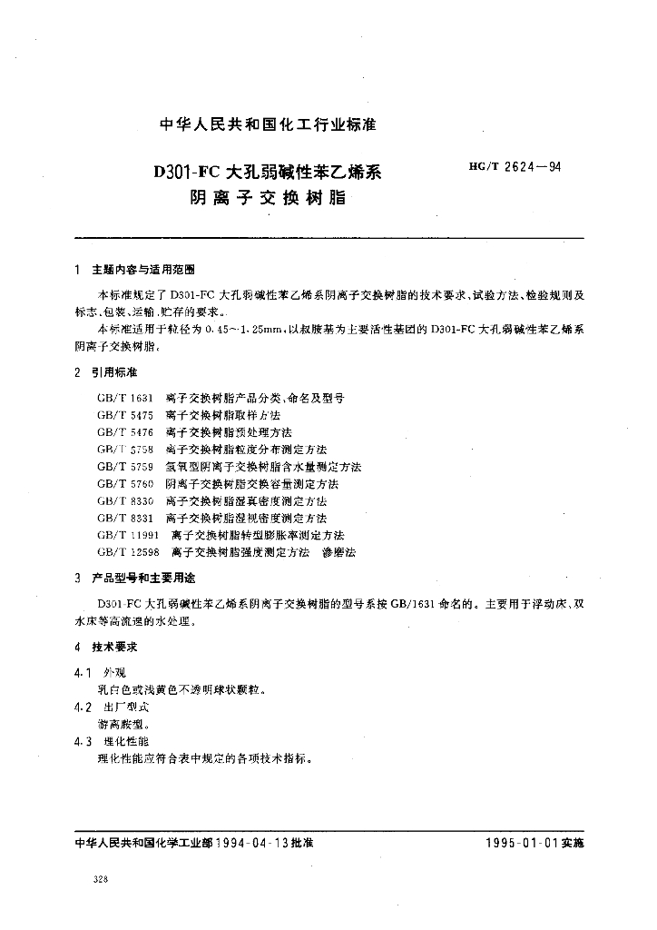 HG/T 2624-1994 D301-FC大孔弱碱性苯乙烯系阴离子交换树脂