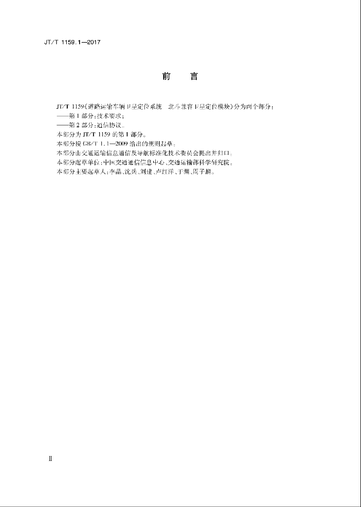JT/T 1159.1-2017 道路运输车辆卫星定位系统北斗兼容卫星定位模块 第1部分:技术要求