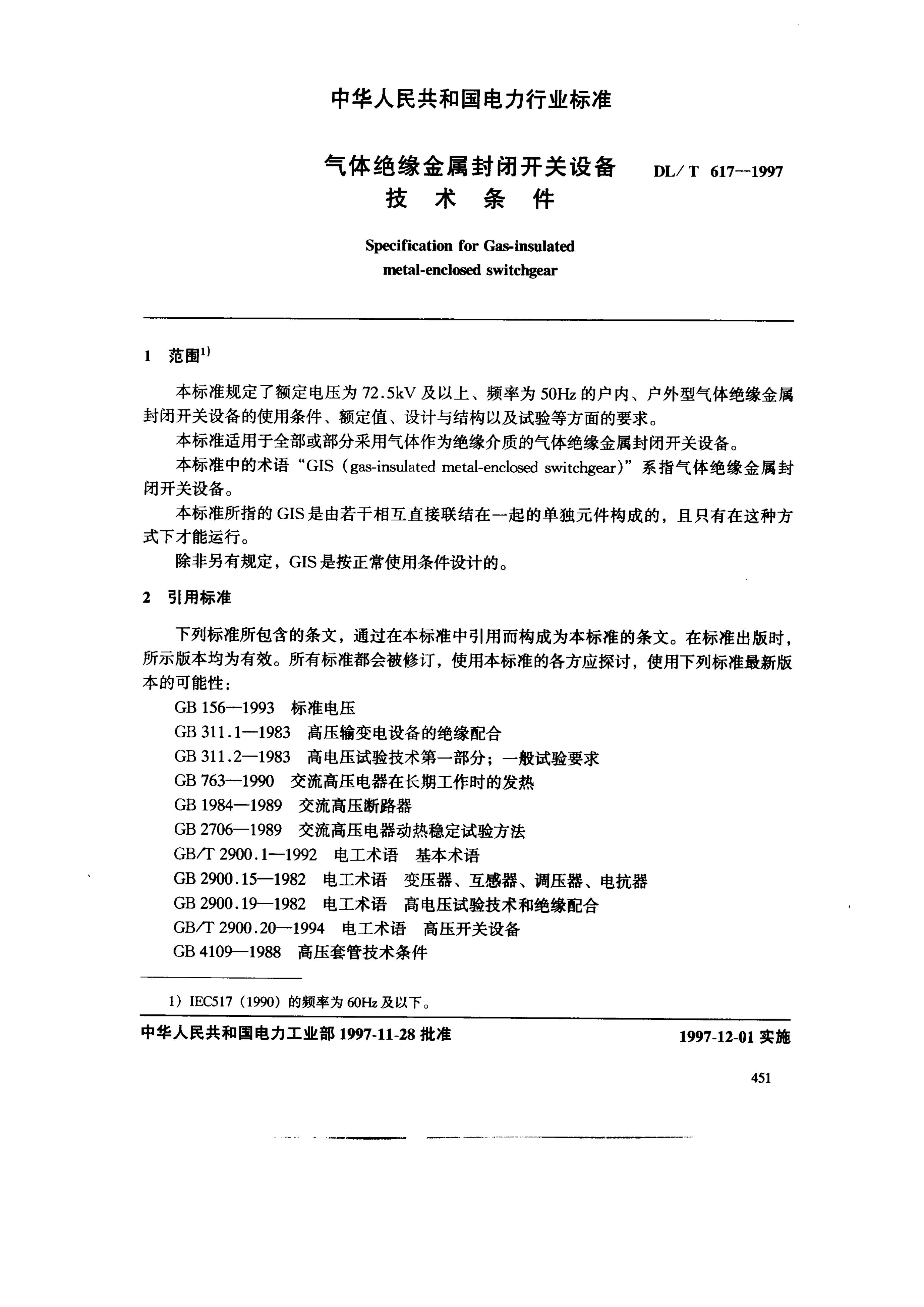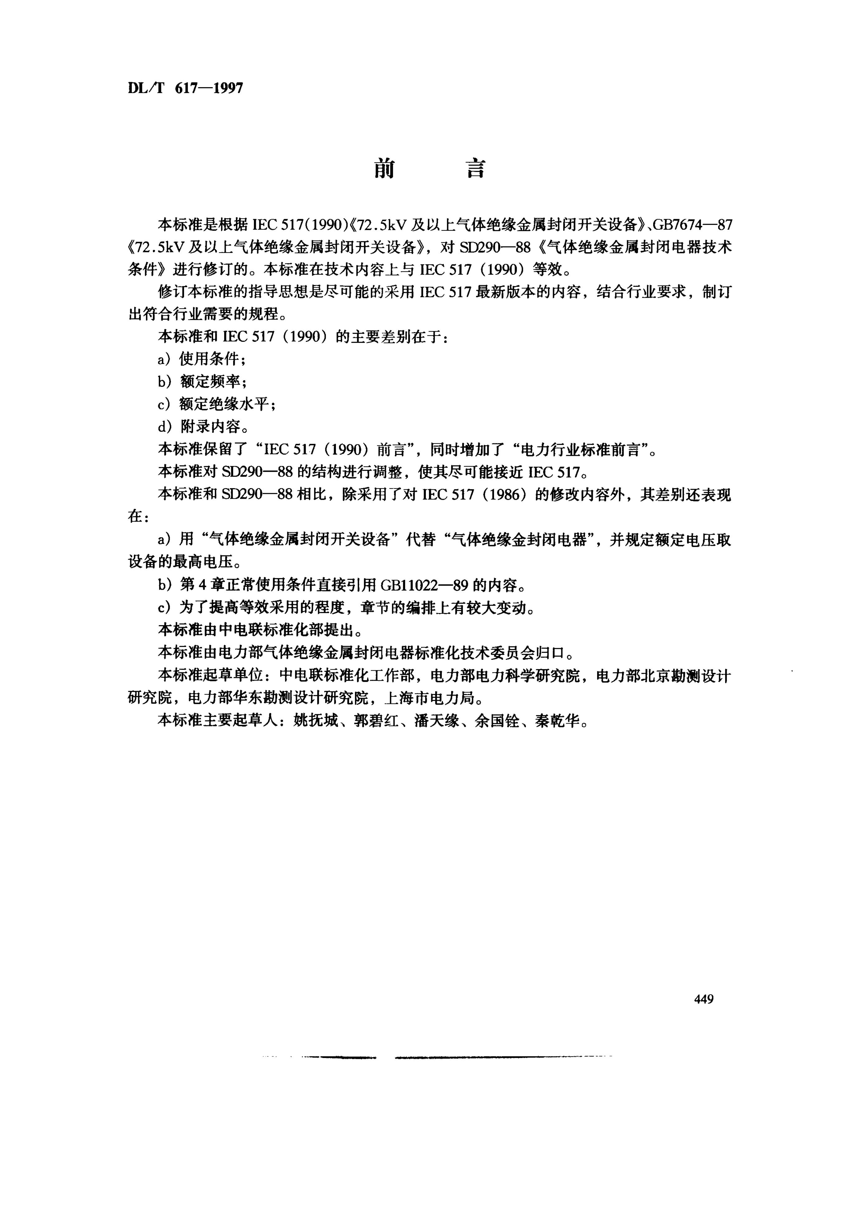 DL/T 617-1997 气体绝缘金属封闭开关设备技术条件