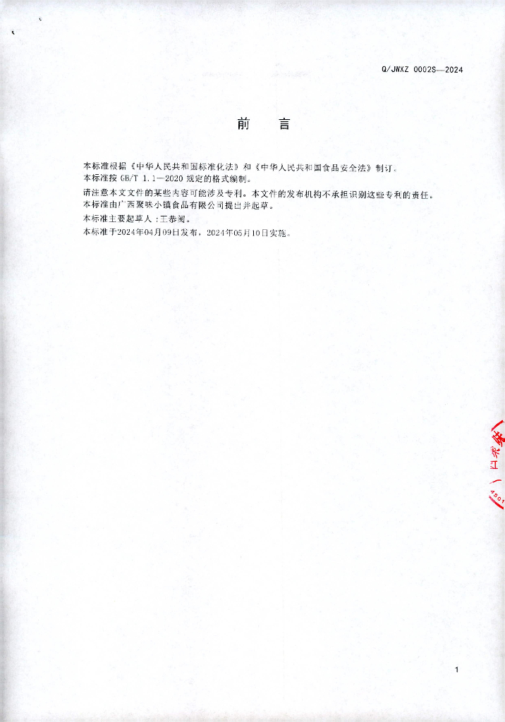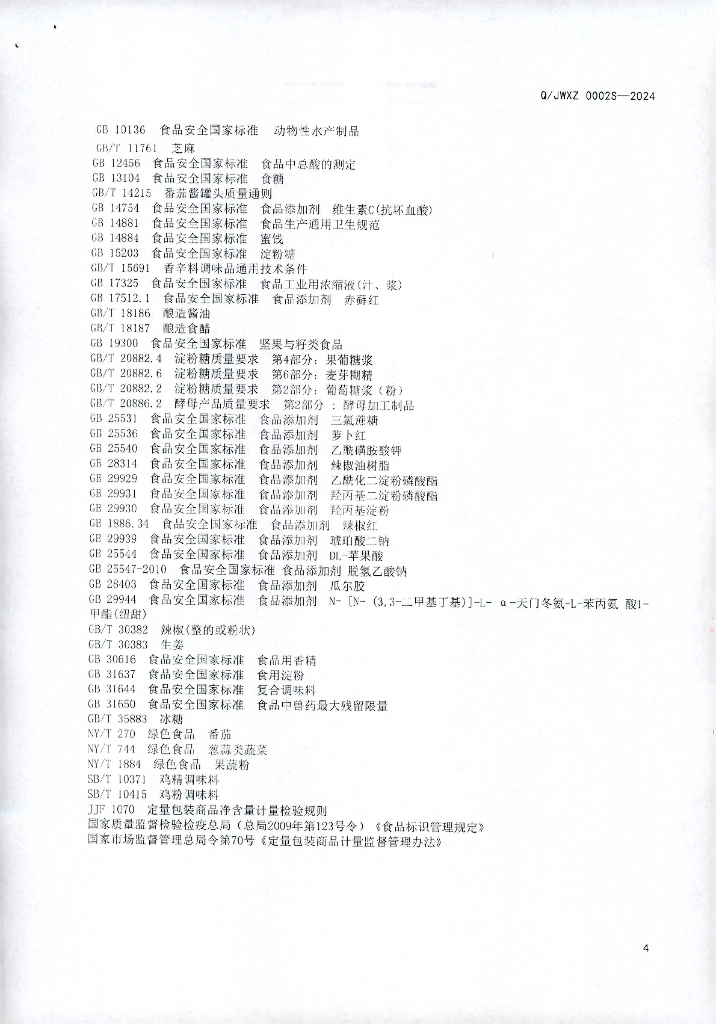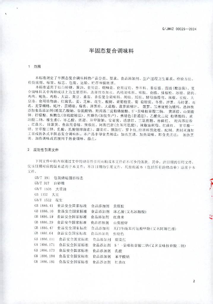Q/JWXZ 0002S-2024 半固态调味料