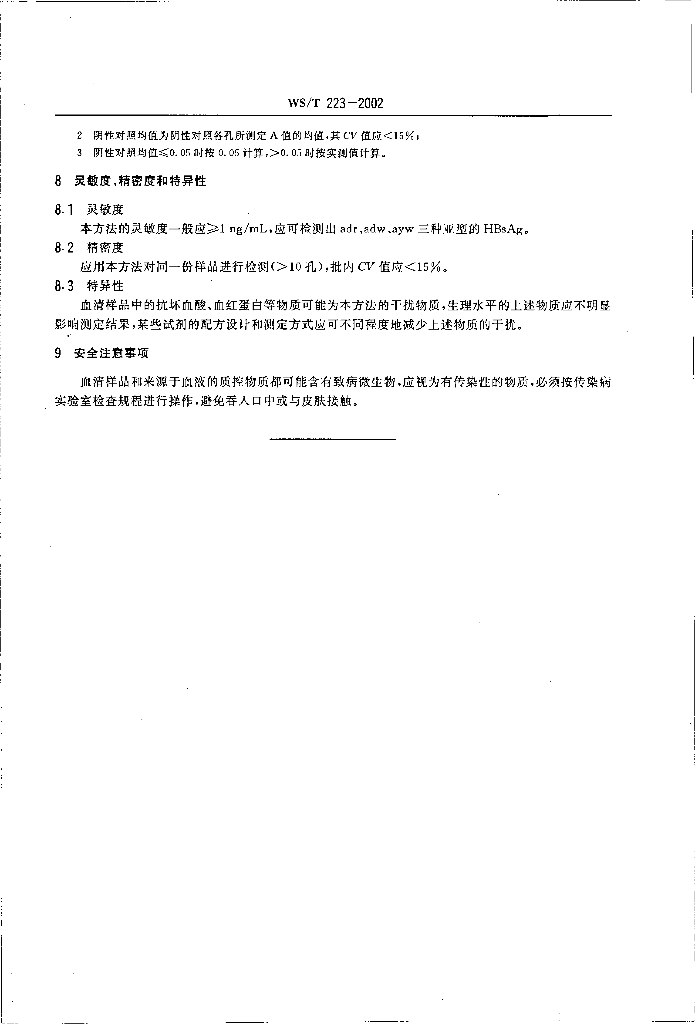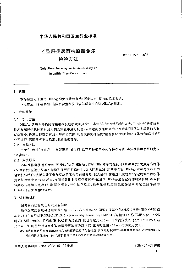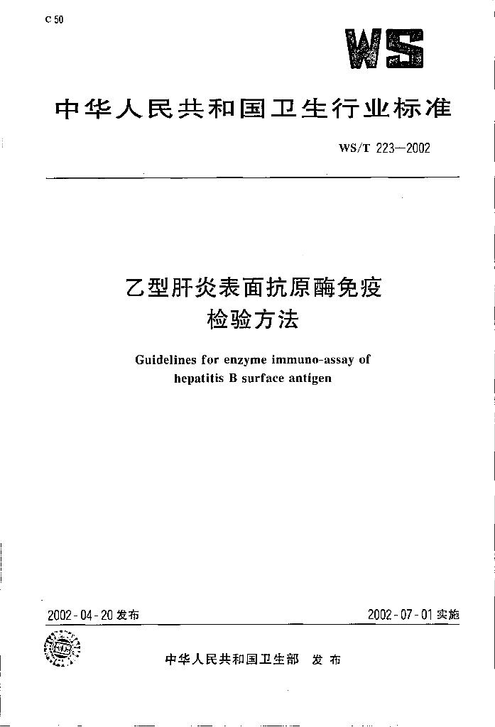WS/T 223-2002 乙型肝炎表面抗原酶免疫检验方法