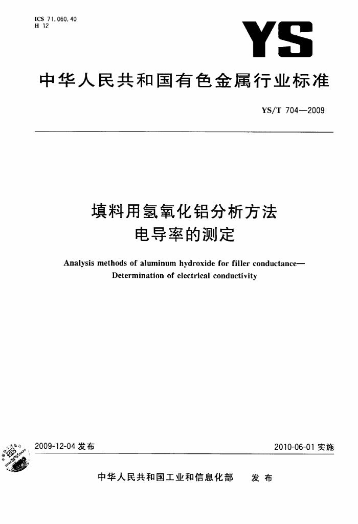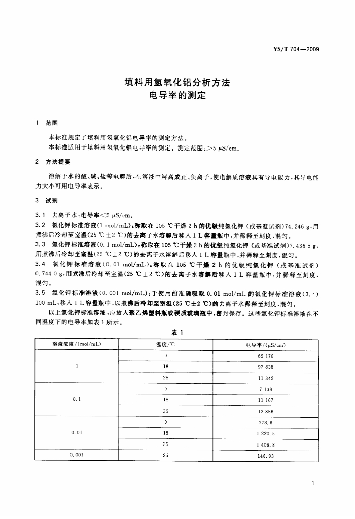 YS/T 704-2009 填料用氢氧化铝分析方法 电导率的测定