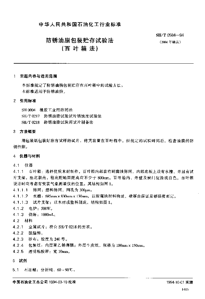 SH/T 0584-1994 防锈油脂包装贮存试验法(百叶箱法)