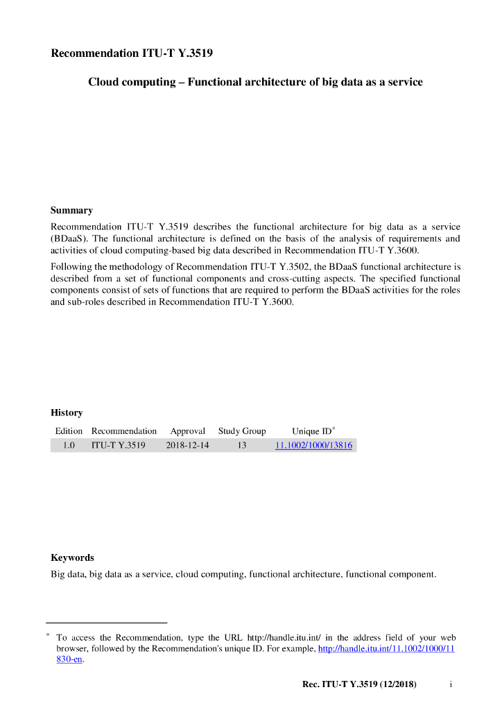 ITU-T Y.3519-2018 云计算 大数据作为服务的功能架构