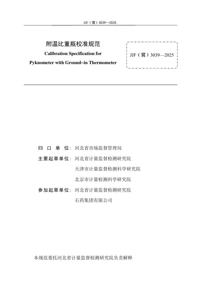 JJF(冀)3039-2025 附温比重瓶校准规范