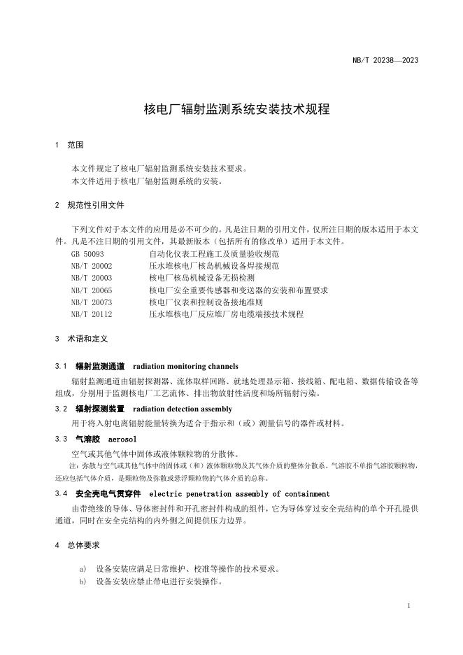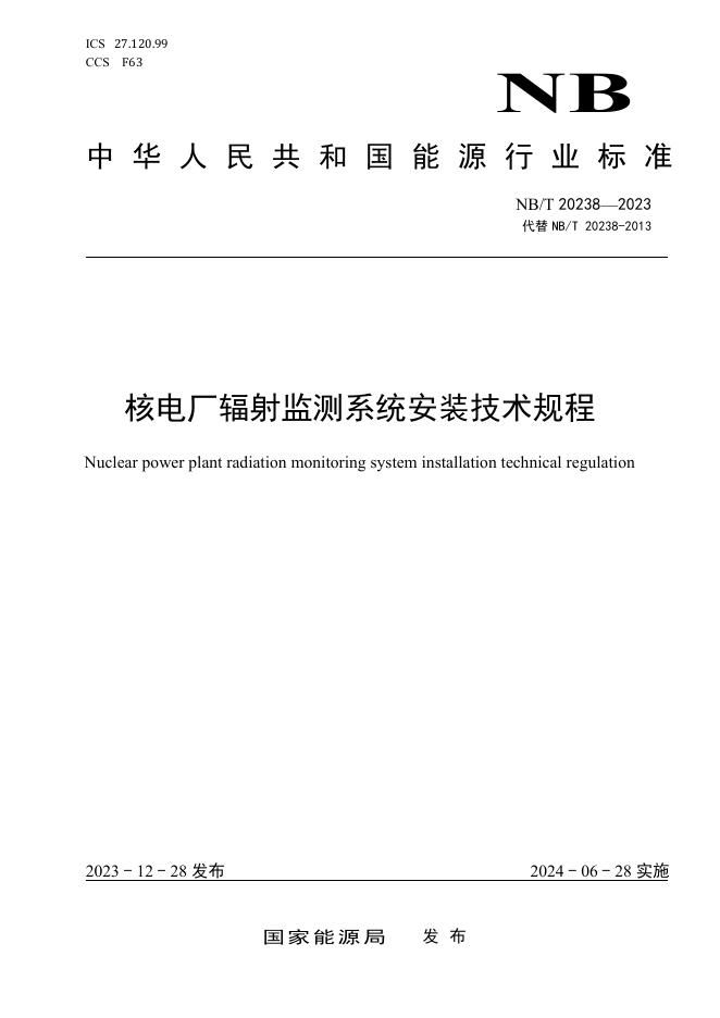 NB/T 20238-2023 核电厂辐射监测系统安装技术规程