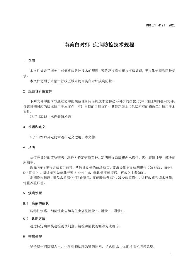 DB15/T 4191-2025 南美白对虾 疾病防控技术规程