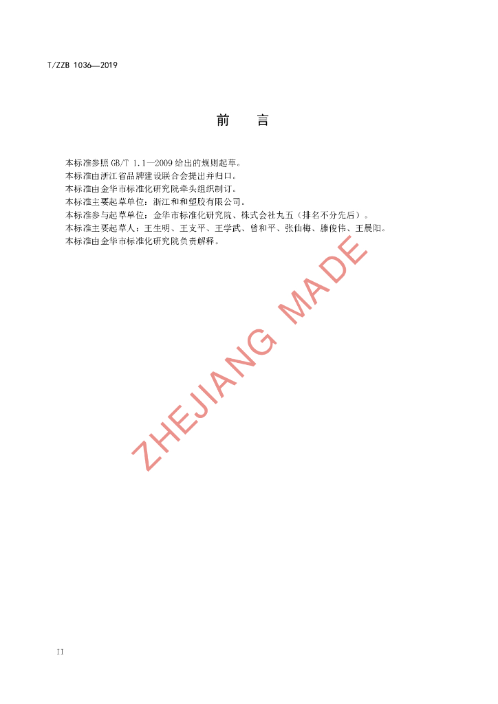 浙江和和塑胶有限公司、金华市标准化研究院、株式会社丸五