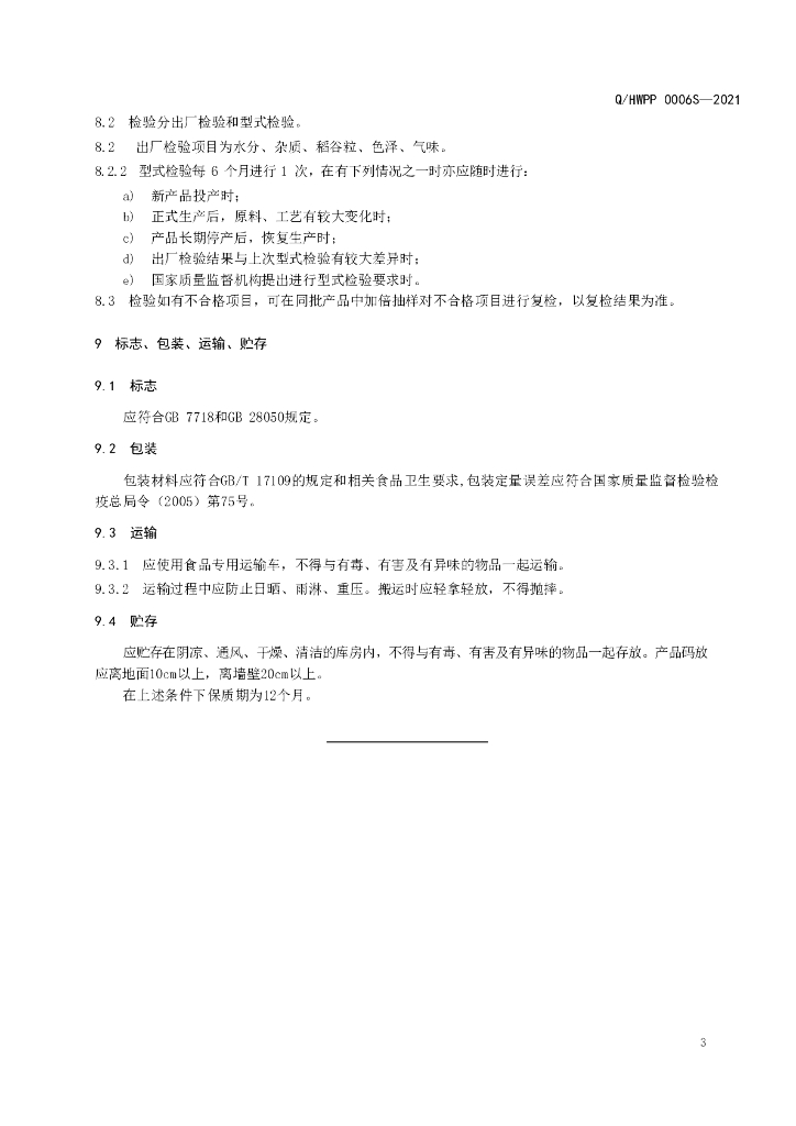 Q/HWPP 0006S-2021 黄金比例调和米