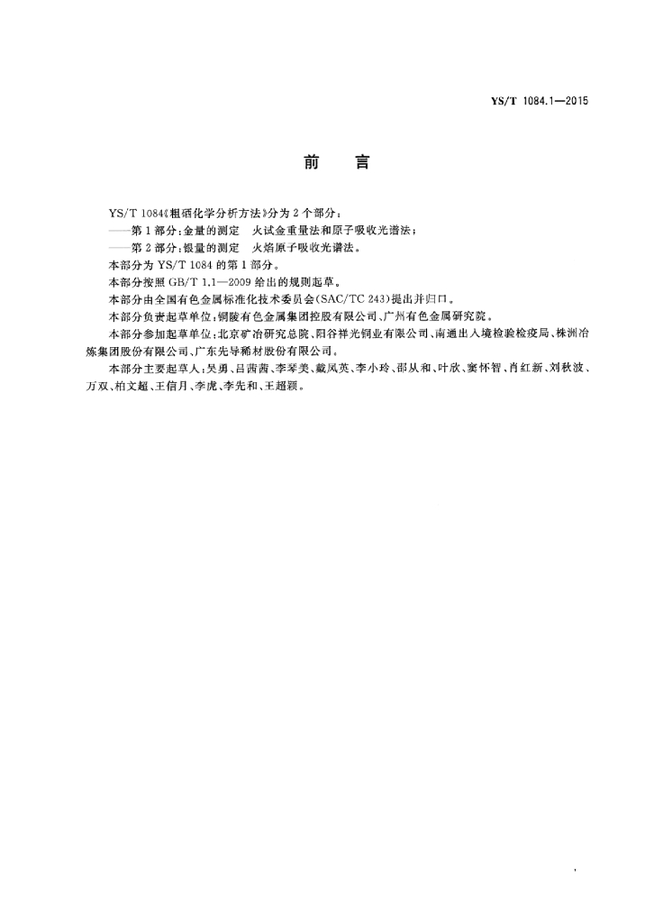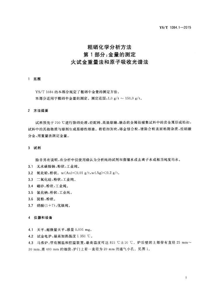 YS/T 1084.1-2015 粗硒化学分析方法 第1部分:金量的测定火试金重量法和原子吸收光谱法
